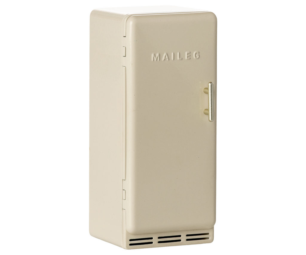 Step into the Maileg Mouse world with this charming vintage-style fridge, designed to slot seamlessly into the Mouse hole Farmhouse. Open the door to discover delightful surprises - a wedge of cheese, a sausage, and colourful ice creams - all waiting to spark imaginative adventures. Perfect for expanding your mouse family's culinary tales and enriching pretend play. (Fridge only - mice and other accessories sold separately.)