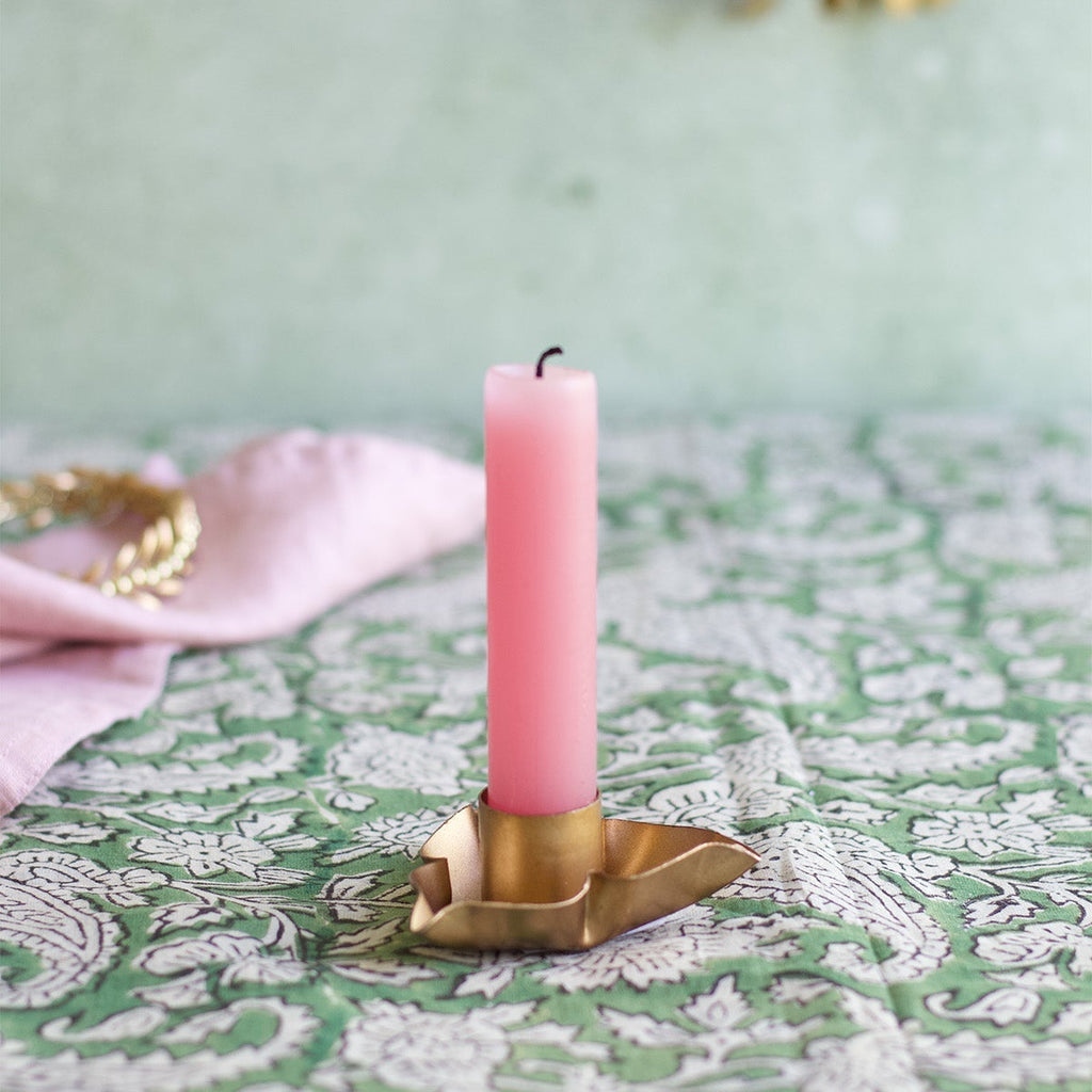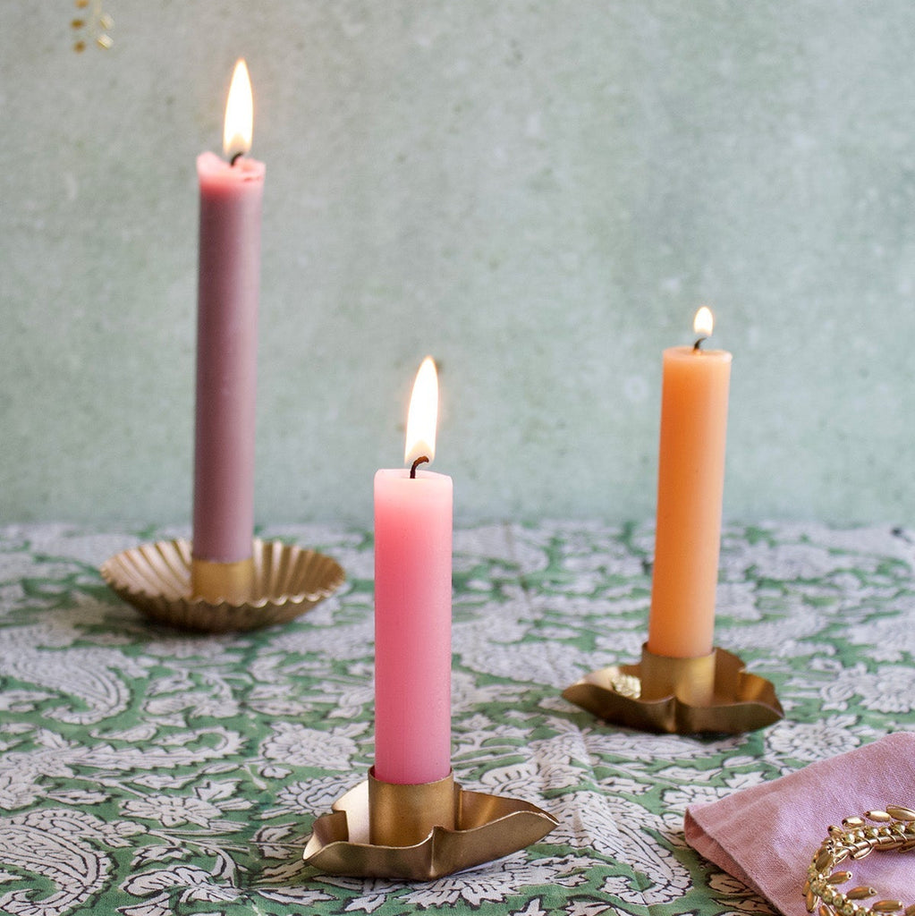 Inspired by the graceful geometry of Oxalis petals, these handcrafted brass candleholders capture nature's quiet beauty. Softly sculpted curves echo the delicate form of clover blooms, while the warm metallic finish creates an inviting ambiance wherever you place them. Perfect for taper candles, they transform any surface - tabletop, shelf, or mantelpiece - into a focal point of understated sophistication. Let these botanical-inspired pieces infuse your home with timeless elegance and natural charm.