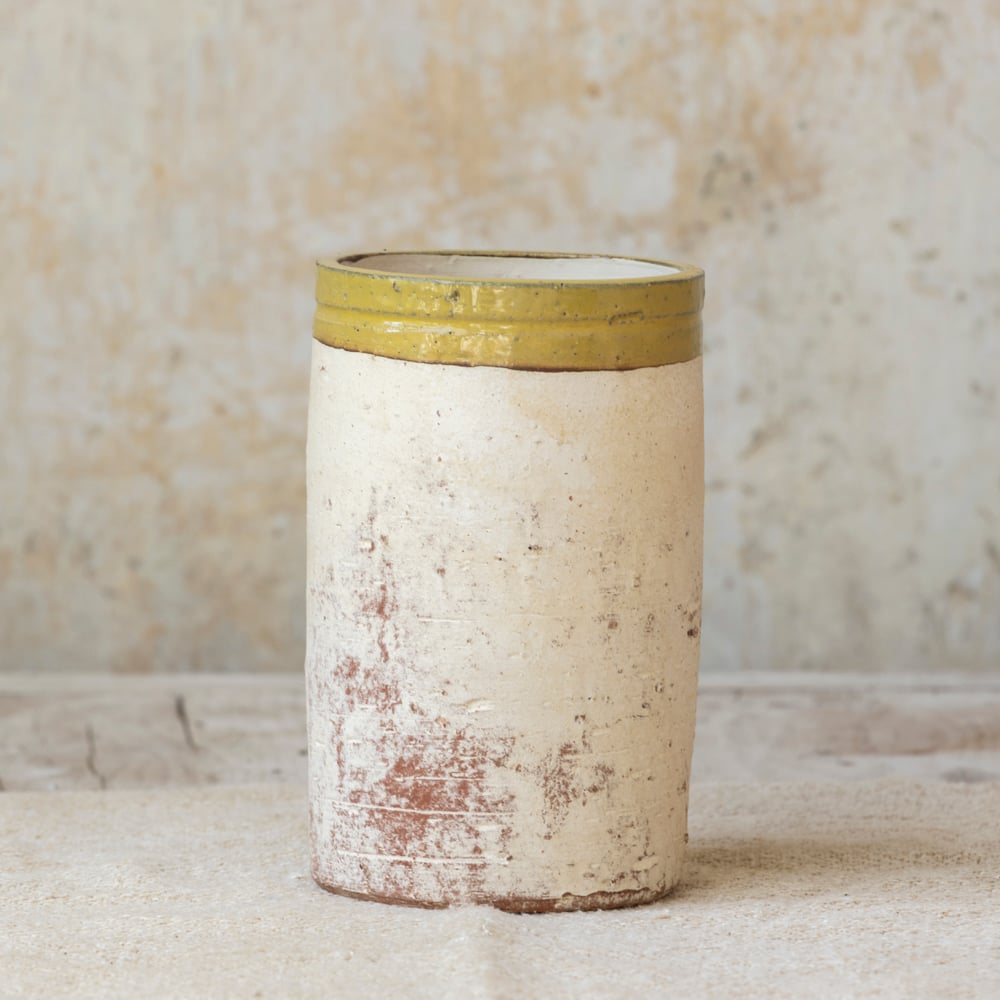Bring a touch of warmth and elegance to your space with this charming ceramic jar, highlighted by a bold Dijon mustard glazed rim. Expertly handcrafted, it combines practical storage with eye-catching design. The vibrant Dijon glaze contrasts beautifully with the natural ceramic, infusing colour and style into any room. Perfect for organising, showcasing, or adding a decorative flourish, this uniquely made pot fits seamlessly in your kitchen, living area, or any display space, enhancing your home with its inviting, artisanal character.