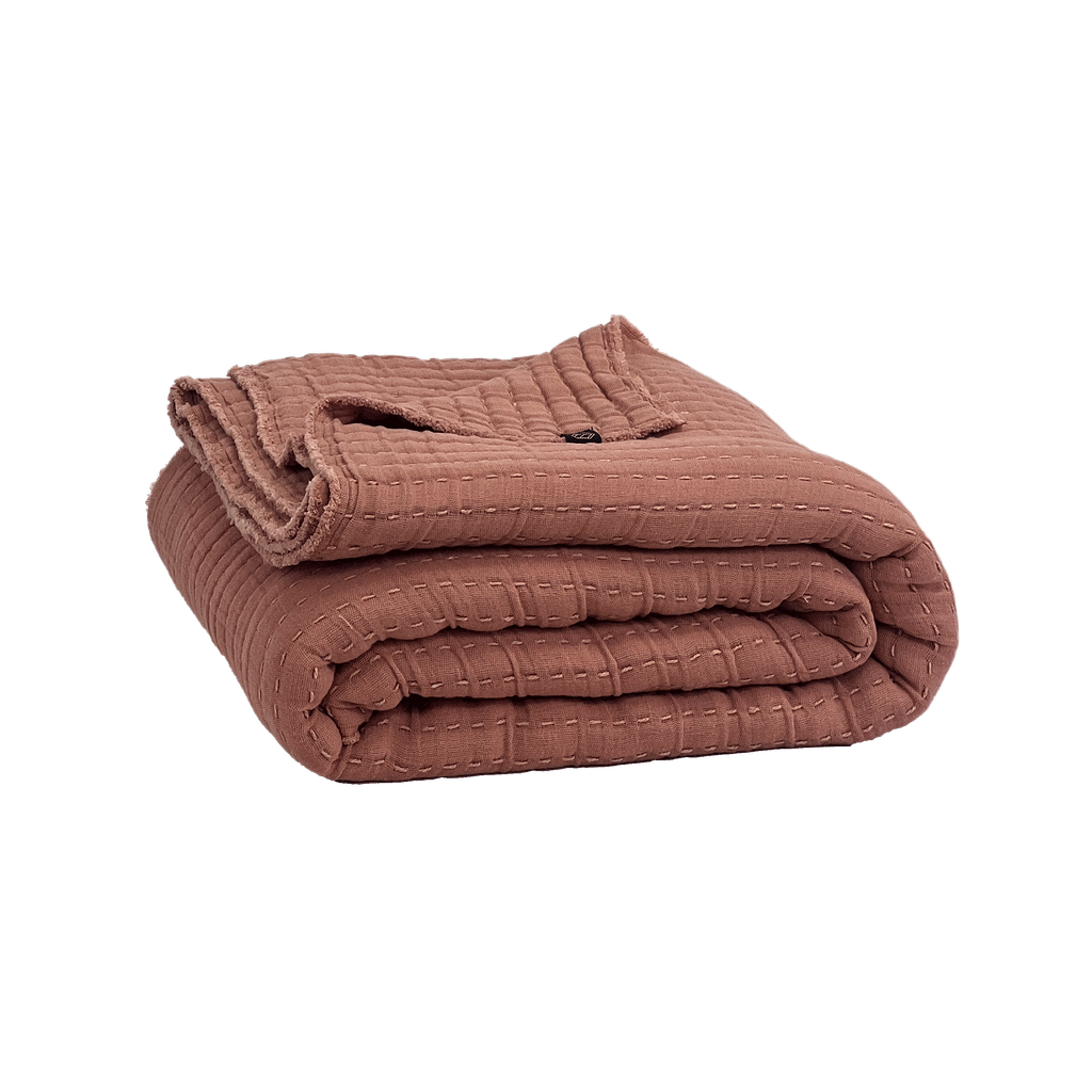 Its textured weave is finished with soft fringed edges all around, while the visible Kantha stitching adds depth and a subtle handcrafted touch. Whether used as a bedspread, an extra layer or draped over a sofa, it brings instant softness and character to any space.
