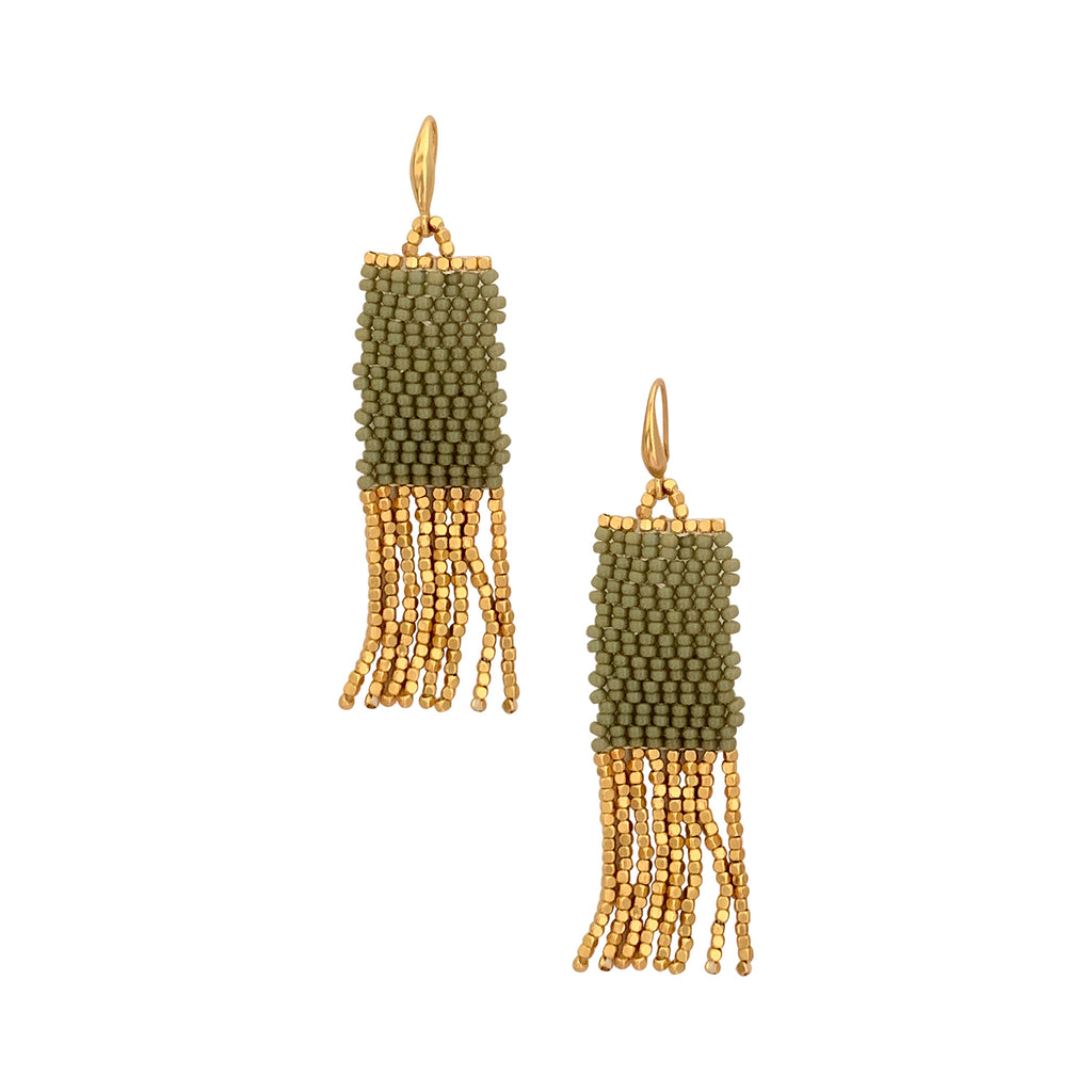 Elevate any ensemble with these stunning Gigi earrings, meticulously crafted with Antique Beige beadwork. From casual outings to special occasions, these earrings add a touch of glamour and elegance. The fringe design and golden accents exude a timeless charm, while the 5cm length (6.5 cm including the hook) makes a striking statement. Each pair is thoughtfully made, capturing your individual style and appreciation for artisanal jewelry.