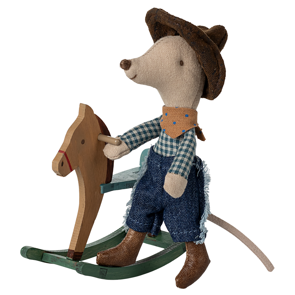 Maileg Cowboy Mouse on Rocking Horse, Little Brother