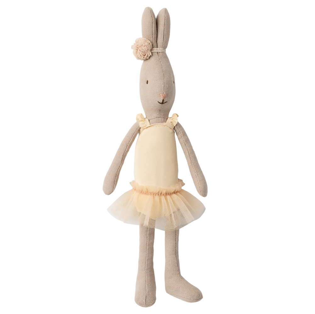 The beloved Maileg rabbit comes dressed as a graceful ballet dancer. It features a delicate suit and a soft tulle skirt, complete with charming headband around its pointed ears.