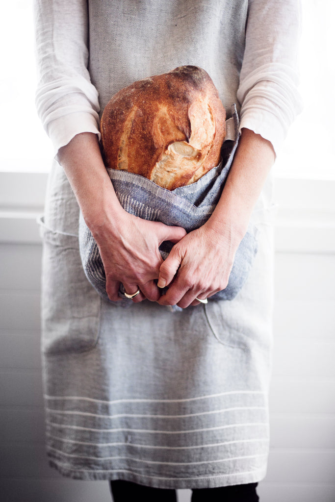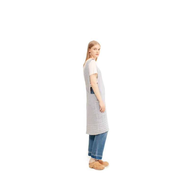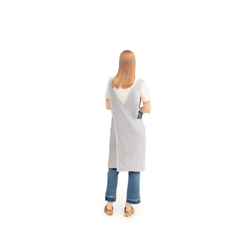 Linen Cross Back Apron - Light Grey with Cream Stripes