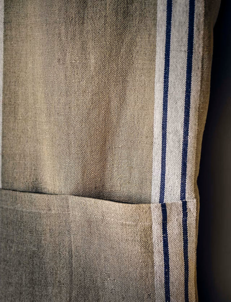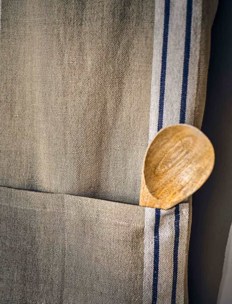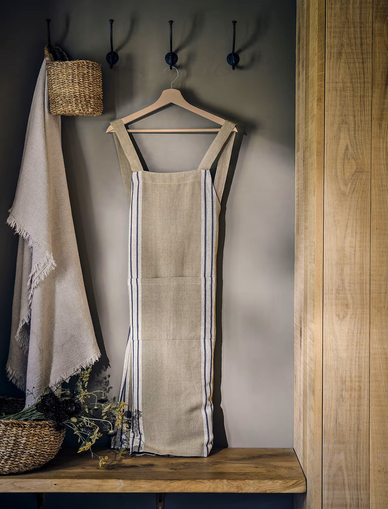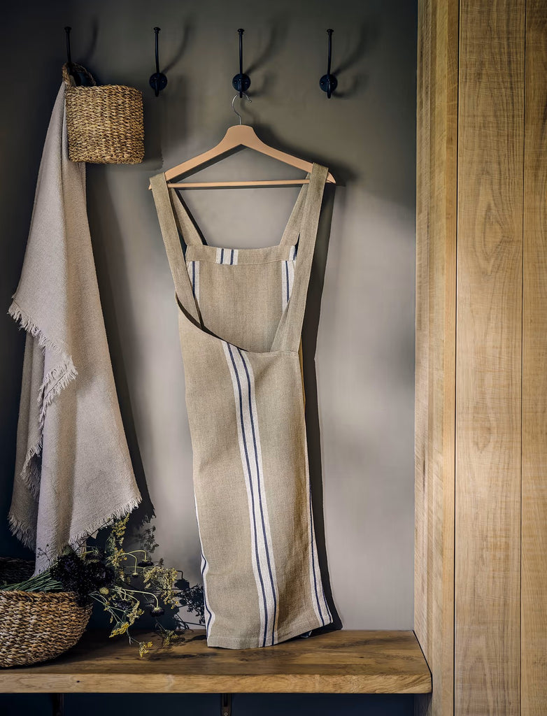 For cooking enthusiasts who love a bit of style, this crossback apron in a linen-cotton blend is a kitchen must-have. Its chic navy stripes add a touch of fun flair while the crossed straps at the back ensure full coverage, keeping your clothes safe from sneaky splashes and flour clouds - all with a dash of attitude!