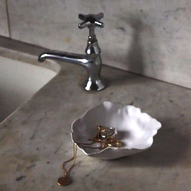 This gorgeous, handmade ceramic cup and saucer set has such a lovely organic style and a raw yet elegant appearance. Some say it resembles a beautiful oyster shell!