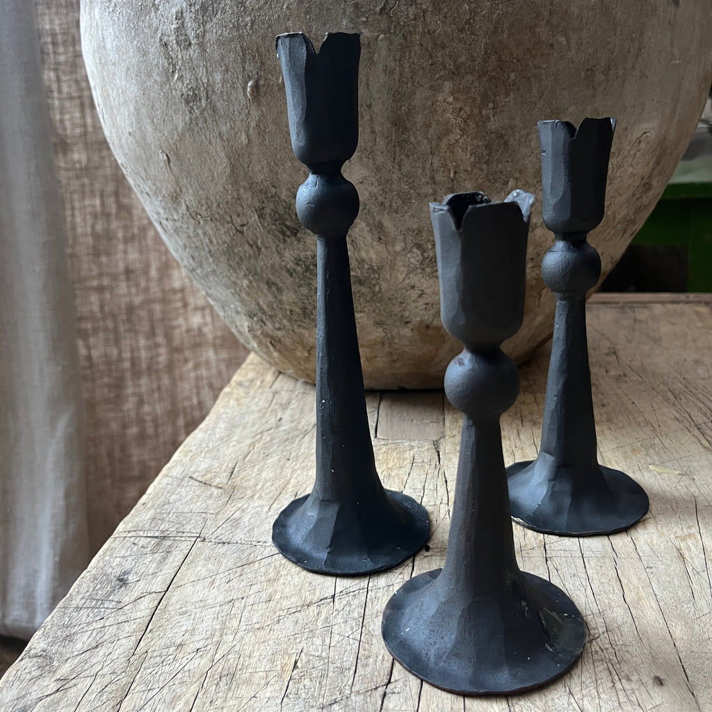/ Tulip Iron Candle Holder - Almost Black - Three Sizes