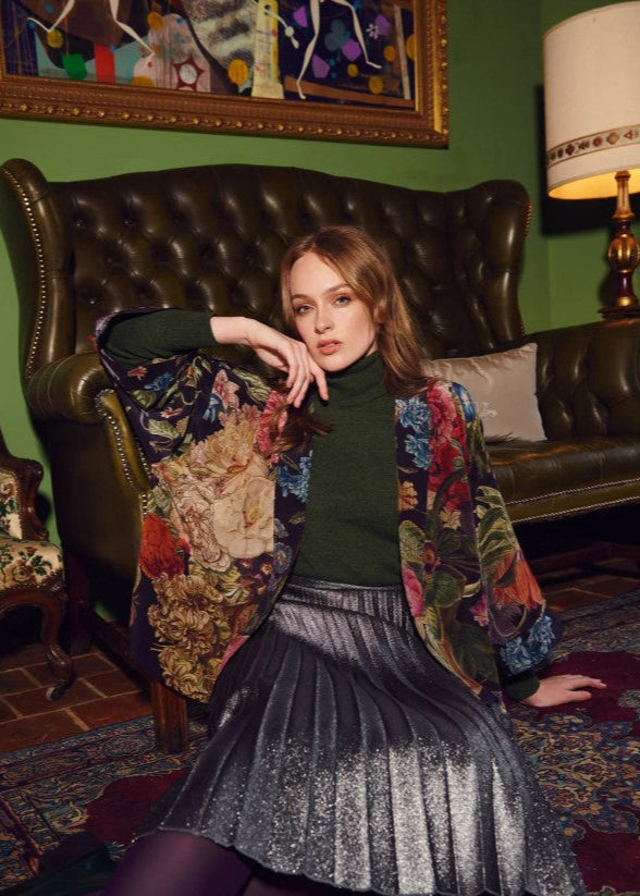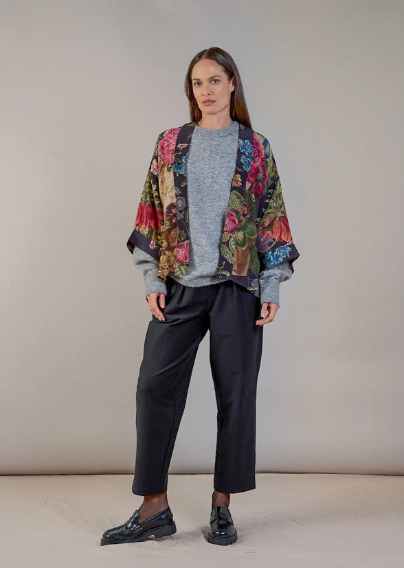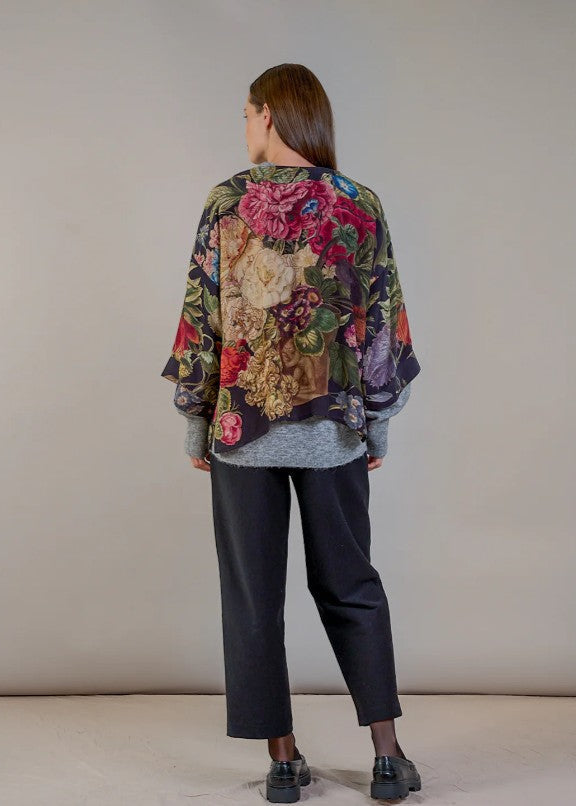 Drawing inspiration from the Dutch Old Masters, this kimono features a vibrant bouquet of primroses, auriculas, and polyanthus flowers in striking, vivid hues. The intricate detailing of this print is truly spectacular!