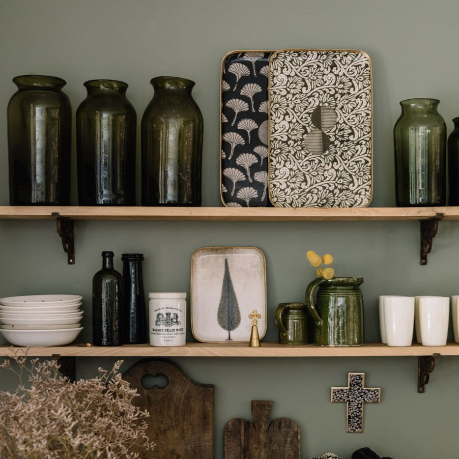 Experience the perfect combination of practicality and beauty with this Enamelled Ginkgo Leaf Tray.  Perfect for serving a variety of refreshments, whether it be a traditional afternoon tea or cosy snacks by the fire.  This wonderful tray is sure to elevate any space it occupies. Display it proudly in your kitchen for a touch of elegance and whimsy.